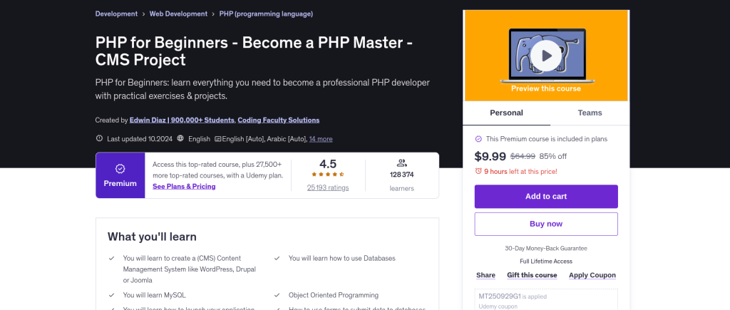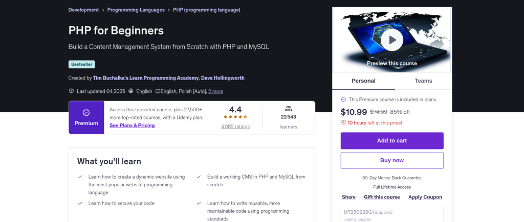 PHP is still a powerful and in-demand skill for web developers in 2025. Whether you want to build personal projects, e-commerce platforms, or enterprise-grade apps, these Udemy courses give you a strong foundation.