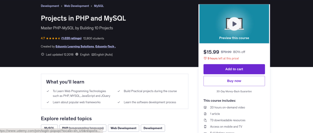 A project-based course where you’ll build 10 different PHP-MySQL applications, gaining hands-on experience.
