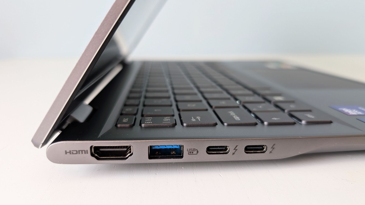 You also get a reasonably fast 512 GB SSD, fast and stable WiFi 7, and plenty of connections, including dual Thunderbolt 4, dual USB-A ports, and full-size HDMI. Additionally, there’s a fingerprint reader, an IR camera for facial login, and a presence sensor. It’s hard to pinpoint anything that’s missing.