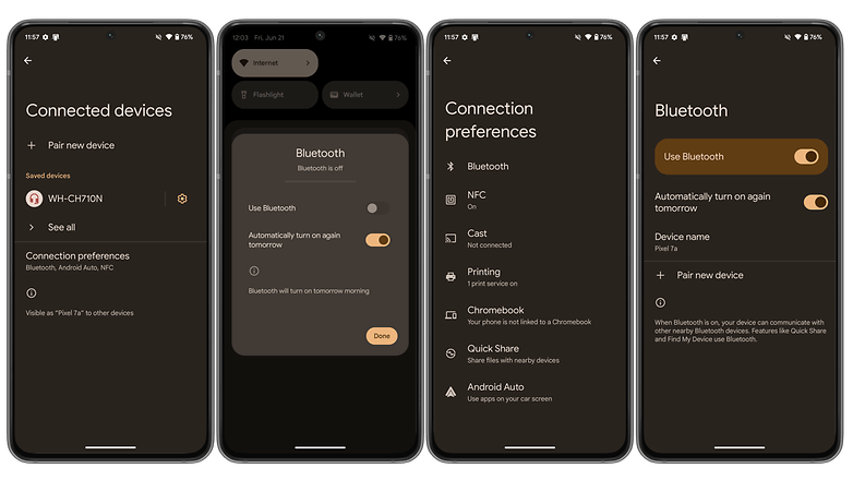 Automatic Bluetooth Reactivation: After turning off Bluetooth for some reason, I often forget to reactivate it. Android 15 will feature an automatic reactivation function, a welcome change if you rely on wireless technology for an accessory or other devices. However, if you prefer manually controlling Bluetooth activation or deactivation, there’s a new button to disable the function in the quick settings popup, also accessible in the Bluetooth settings.