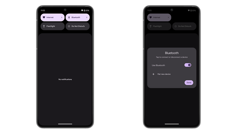 Changes in Bluetooth Quick Settings: The Bluetooth Quick Settings button in Android 15’s DP1 now works slightly differently from previous versions. Instead of turning Bluetooth on/off or serving as a shortcut to the Bluetooth settings screen with a long press, the button now opens a small popup window with the main options, similar to how the Internet button works for Wi-Fi and mobile data.