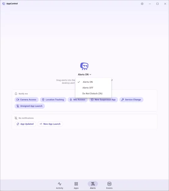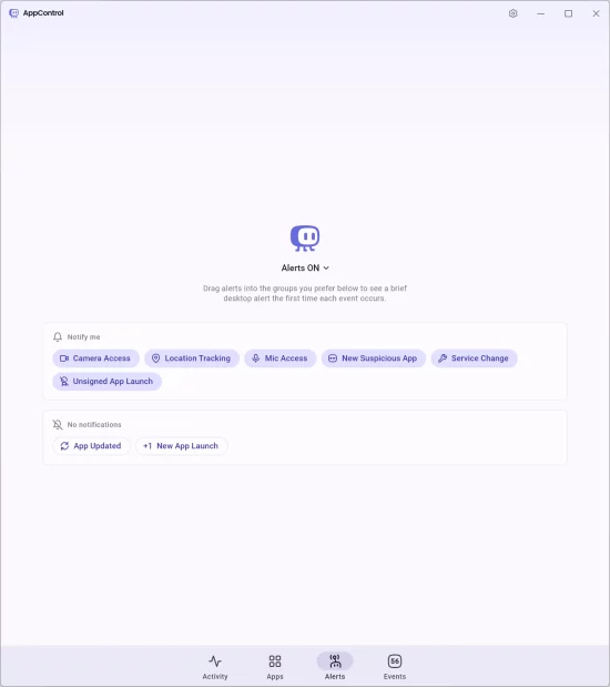 AppControl can monitor system behaviors and notify you instantly when something suspicious happens.