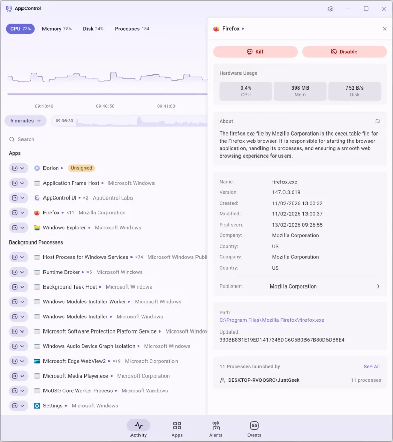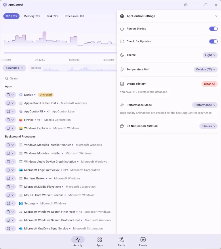 That’s where AppControl comes in — a free, advanced Task Manager alternative that adds historical tracking, deeper process control, and real-time behavioral alerts.