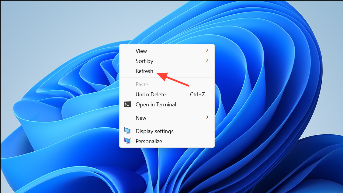 Step 1: Right-click on the desktop and select “Refresh” (or press F5).