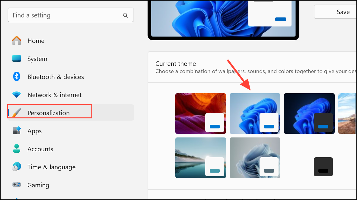 Step 1: Open Settings, go to “Personalization” > “Themes,” and switch to a default Windows theme.