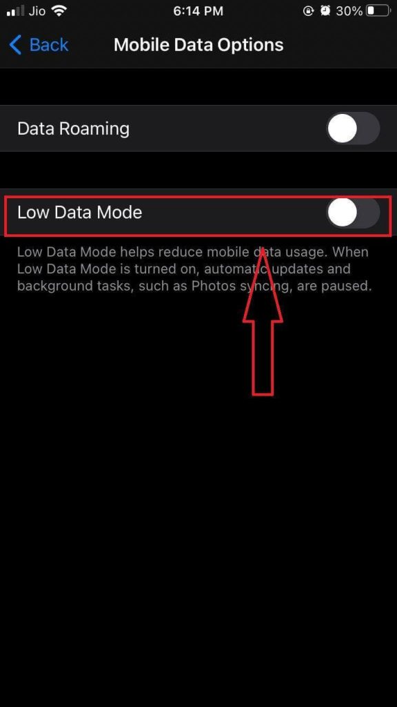 Fix 5: Disable Low Data Mode on Your Smartphone