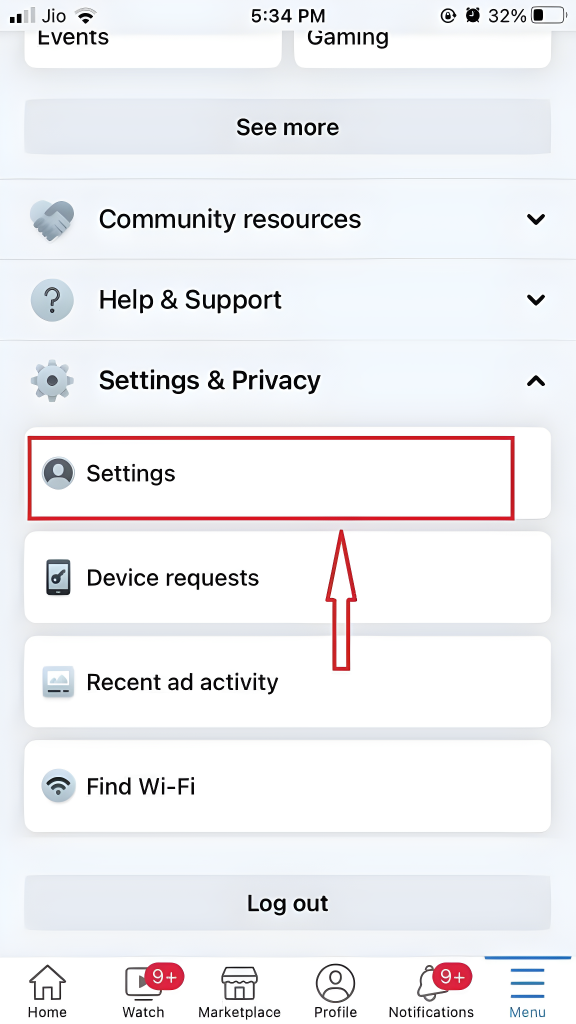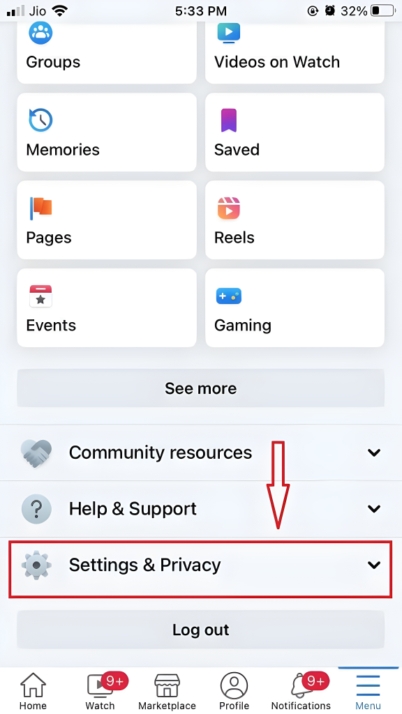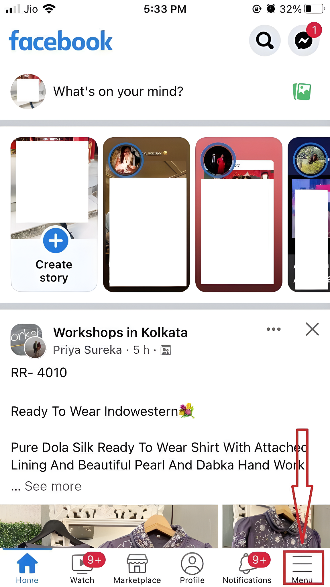 - Open the Facebook app and from the bottom right corner click on the three-horizontal line menu icon.