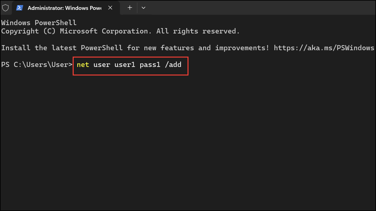 2- Create a New Administrator Account: Type the following commands, pressing Enter after each: net user newuser newpassword /add net localgroup administrators newuser /add Replace newuser and newpassword with your desired username and a secure password.