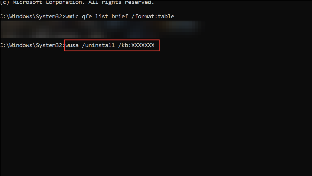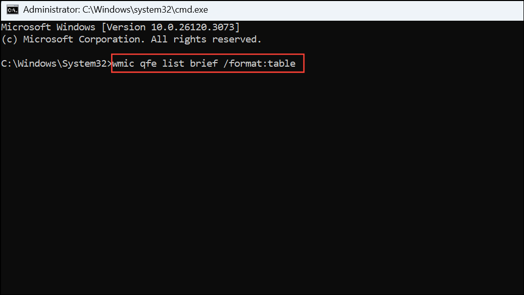 4- List Recent Updates: In the Command Prompt, type the following command and press Enter: wmic qfe list brief /format:table This command displays a table listing recently installed updates, including their KB numbers and installation dates.