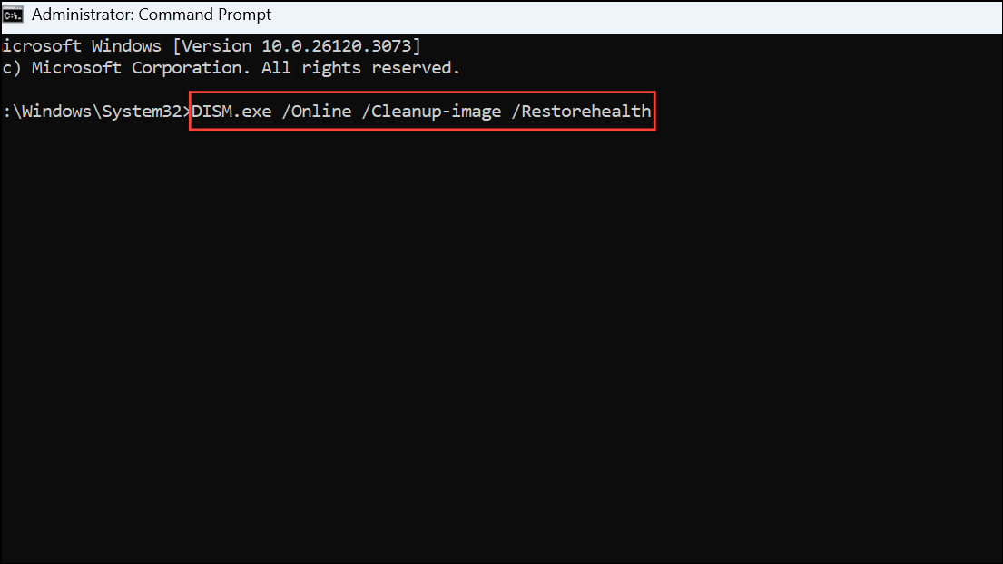 This command checks the Windows image for corruption and attempts to download and replace damaged files. After completion, run sfc /scannow again, then restart your PC.