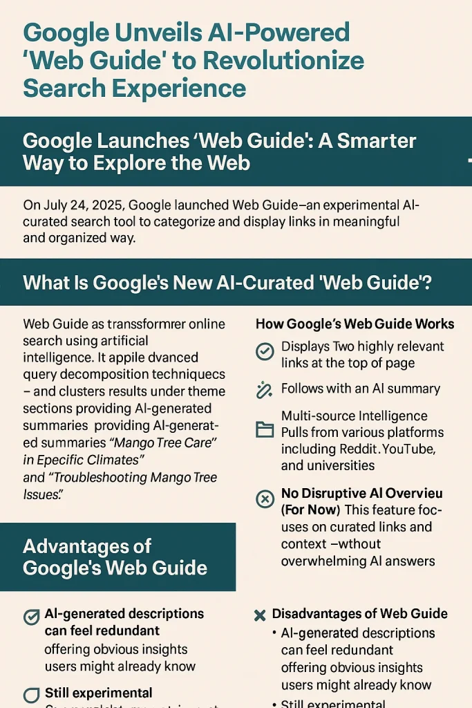 On July 24, 2025, Google quietly rolled out a groundbreaking feature called Web Guide—an experimental AI-curated search tool aimed at enhancing how users interact with search results. Integrated into Google Search Labs, this feature leverages a customized version of Google’s Gemini AI model to categorize and display links in a more meaningful and organized way.