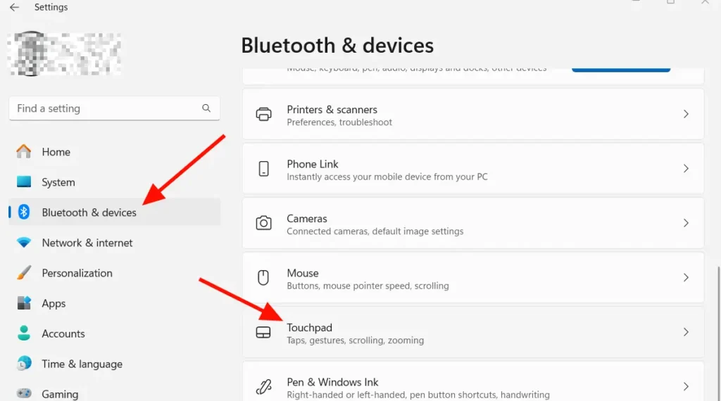 3- Click Touchpad in the right panel.