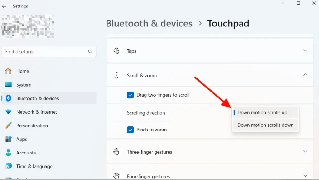 How to Change Touchpad Scroll Direction in Windows 11