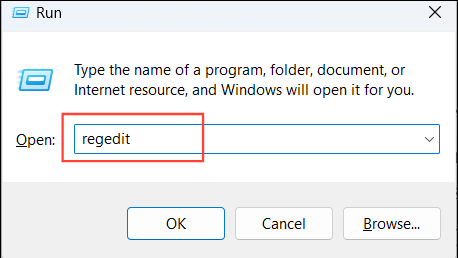 1- Press Windows + R, type regedit, and press Enter to open the Registry Editor.