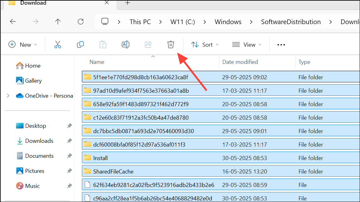 1- Clearing the SoftwareDistribution Download Folder: Open File Explorer and navigate to C:\Windows\SoftwareDistribution\Download. Select all files and delete them. Important: Only remove the contents, not the entire folder. Before deleting these files, ensure that all pending Windows updates have been installed.