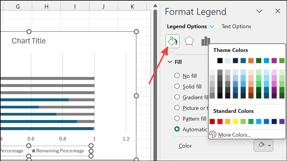 Step 3: Format the “Remaining” series with a light gray or no fill, and the “Progress” series with a solid color.