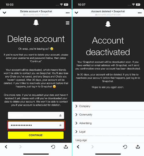 If you don’t want to permanently delete your account but only wish to deactivate it temporarily, consider choosing “Deactivation” for your Snapchat account instead of deletion.