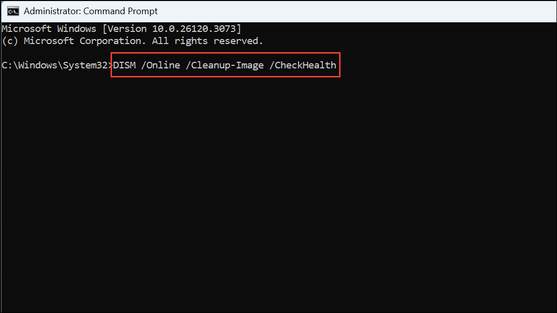 3- Use DISM Tools: Execute these commands in order, pressing Enter after each one: DISM /Online /Cleanup-Image /CheckHealth DISM /Online /Cleanup-Image /ScanHealth DISM /Online /Cleanup-Image /RestoreHealth These commands will check for corruption, scan the system image, and attempt to repair it.