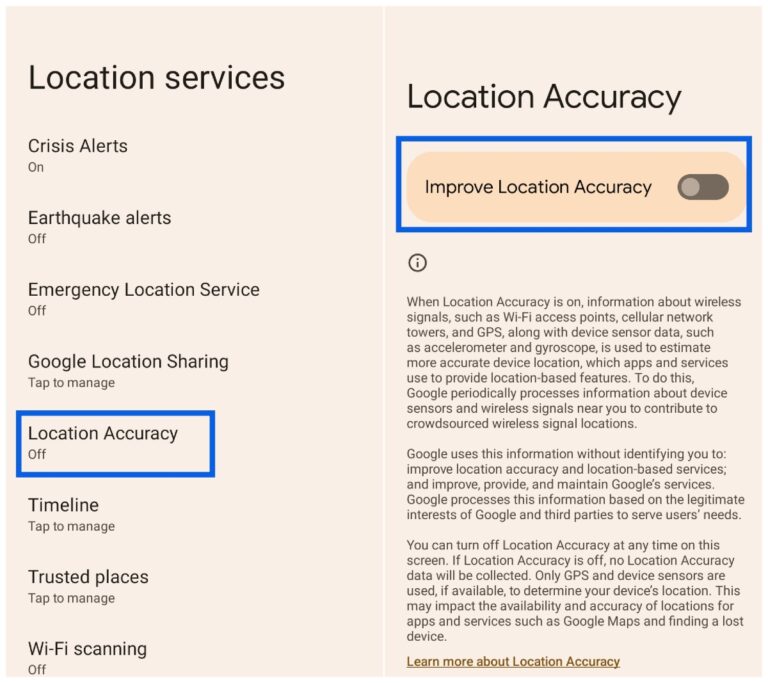 When these features are enabled, your phone can detect nearby networks and devices to determine your location more precisely.