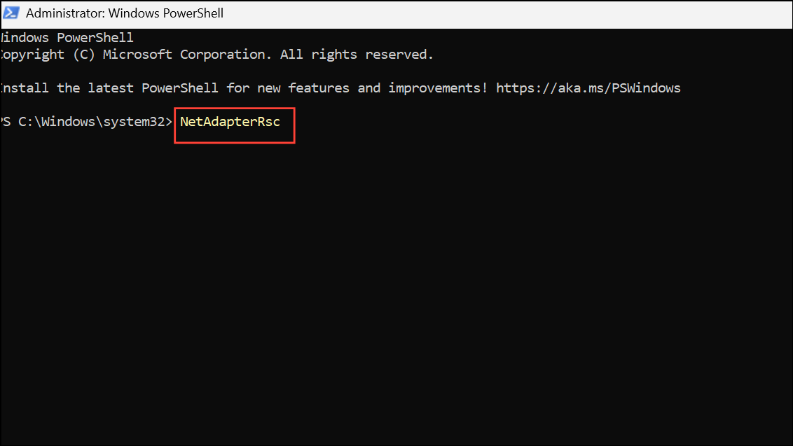 2- View RSC Settings: Run the command Get-NetAdapterRsc to view your current RSC settings.