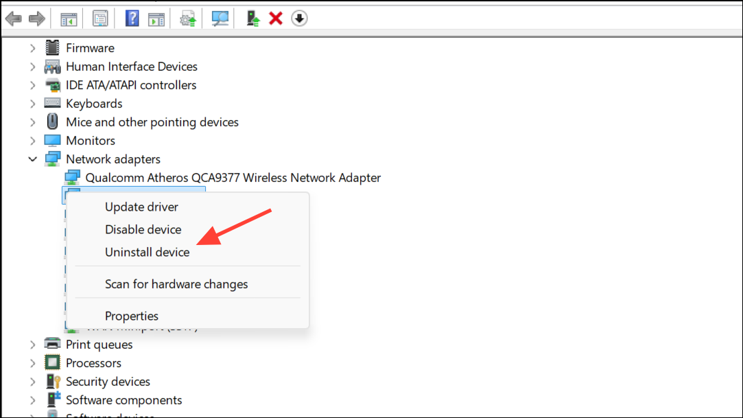 2- Uninstall Old Driver: In Device Manager, right-click your network adapter and select “Uninstall device.” If available, check the box to attempt to remove the driver software.