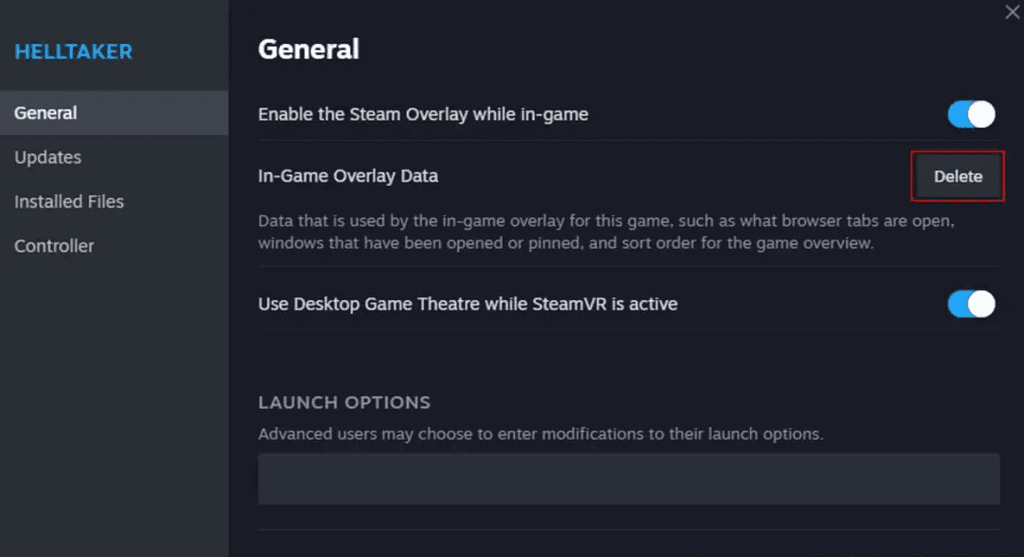Here, you can reset the Steam overlay for any game by clearing its in-game overlay data. To do so,