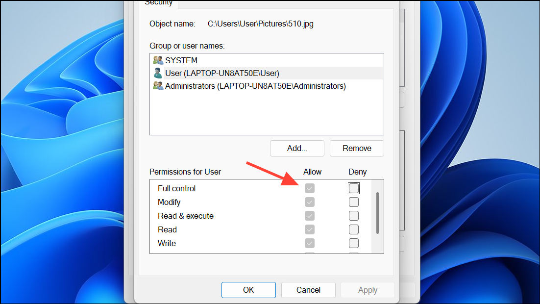 Step 5: Adjust Permissions: Reopen the Properties window, return to “Security” > “Advanced” and adjust permissions as necessary, potentially assigning “Full Control” to your user account. Click “Apply” and “OK” to save the changes.