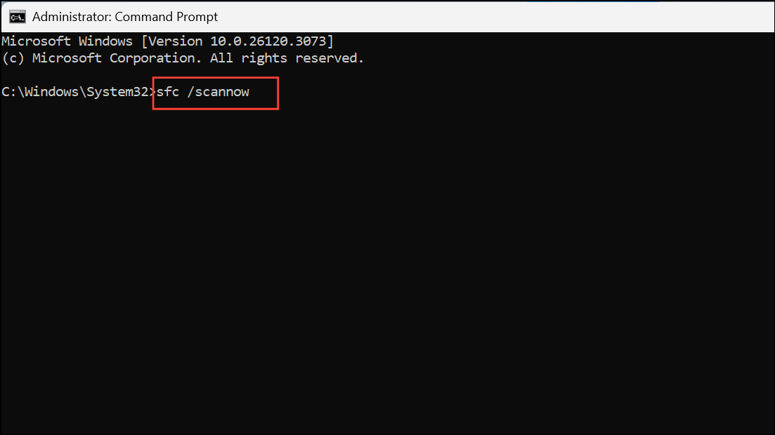 Step 2: Run SFC Scan: In the Command Prompt window, type sfc /scannow and press Enter. Allow the scan to complete fully, which may take some time.