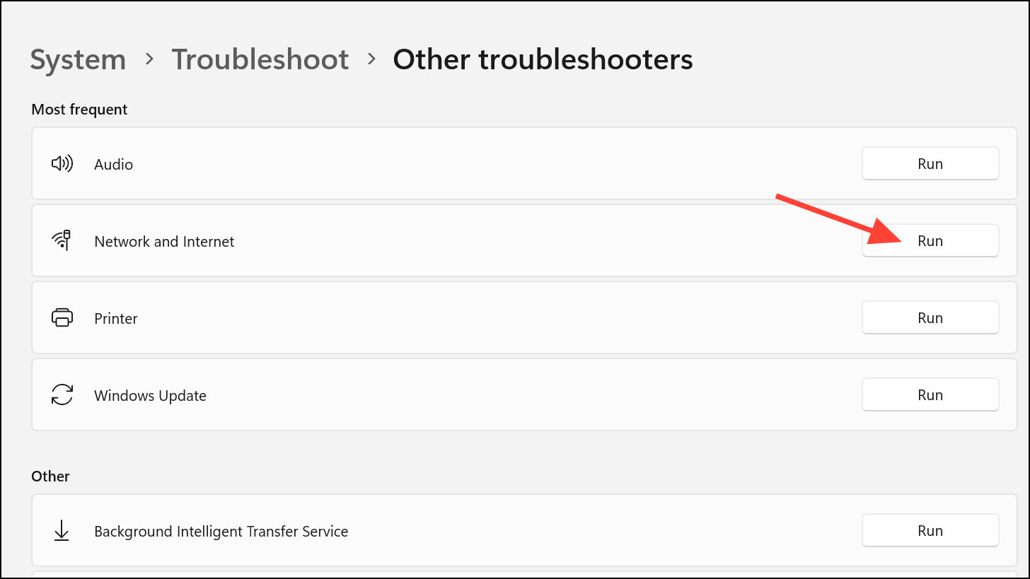 Run the Network Troubleshooter: Go to Settings > System > Troubleshoot > Other troubleshooters and select Network and Internet troubleshooter. Let Windows automatically detect and fix any network issues.
