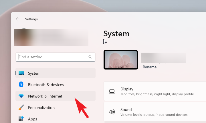 In the left sidebar, click Network & internet.