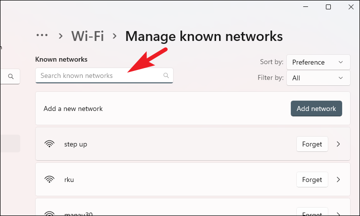 Scroll through the list or use the search box to quickly locate the network you want to remove.