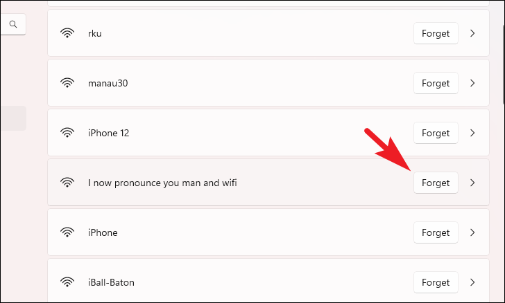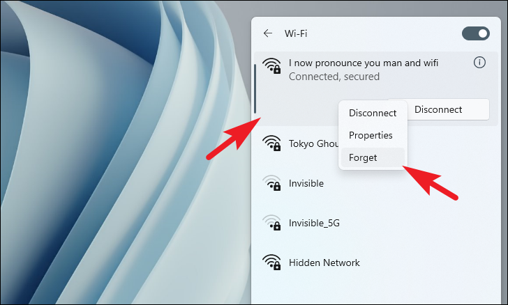 Right-click the Wi-Fi network and select Forget.