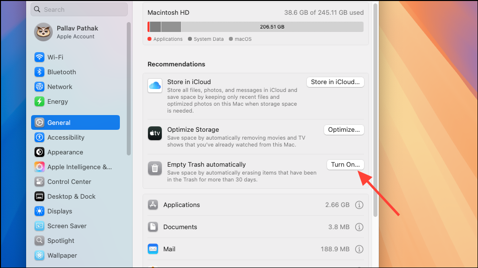 3- Activate Empty Trash Automatically to remove items 30+ days old.
