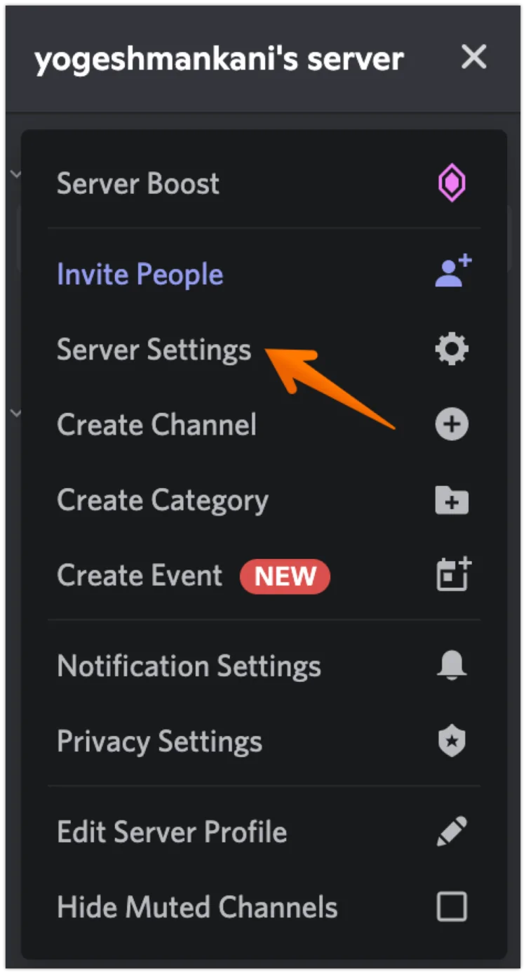 - Click the server name at the top.