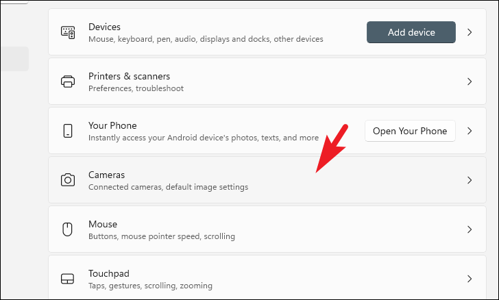 Scroll down on the right panel and click Cameras.