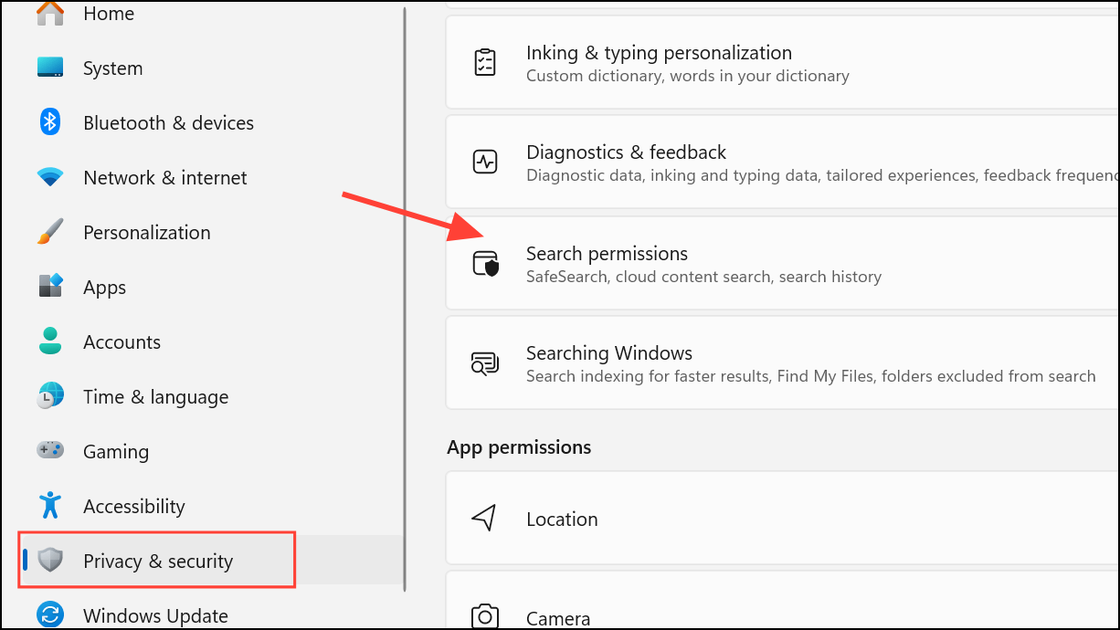 Step 2: Navigating to Search Permissions: In the left-hand sidebar, select “Privacy & security”. Then, on the right, click on “Search permissions.”