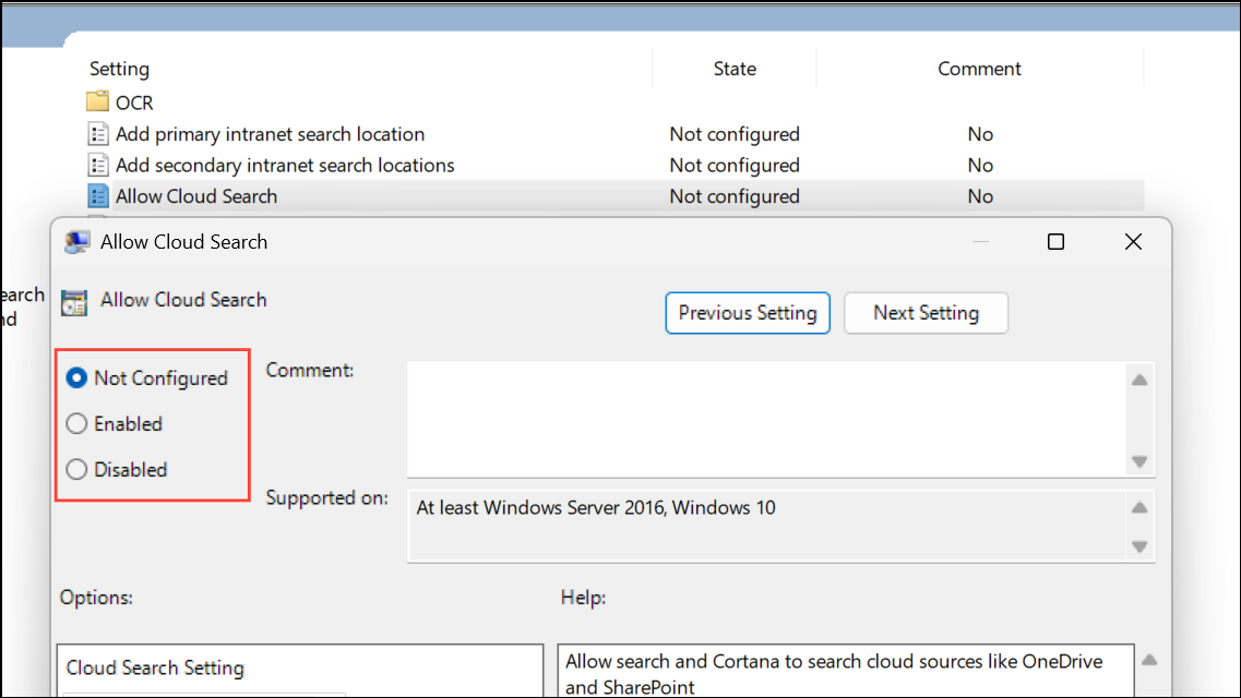 2. Controlling Cloud Content Search with Group Policy Editor (For Administrators)