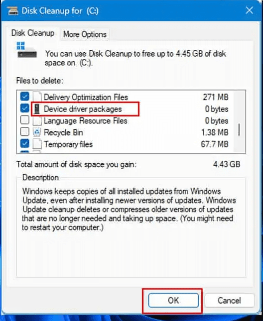 But simply removing the driver may not completely get rid of the driver files. You also need to remove device driver packages using the Disk Cleanup utility.