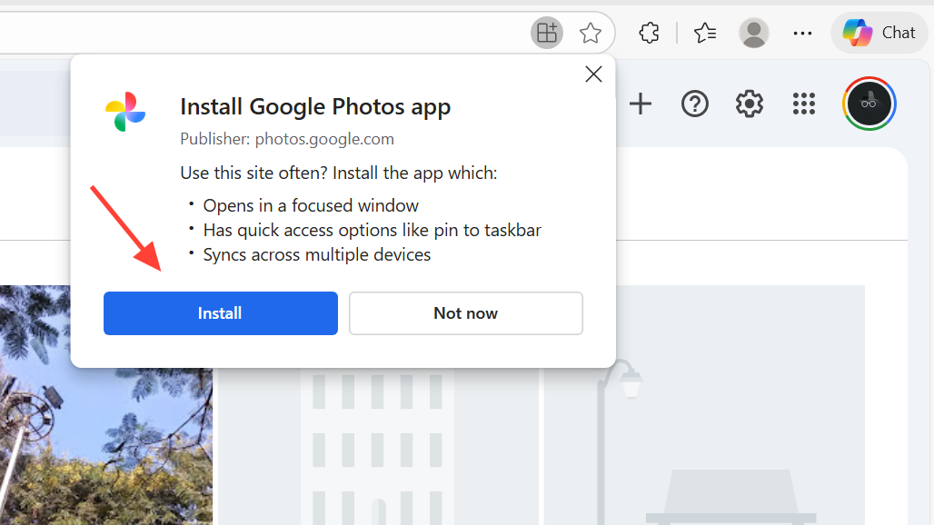 If you want quicker access to Google Photos without relying on the Windows Photos app, you can install Google Photos as a Progressive Web App (PWA).