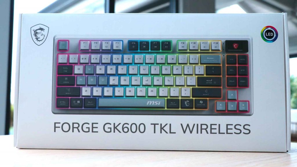 The Forge GK600 TKL Wireless is a compact mechanical keyboard designed for versatility and durability. It features triple connectivity: 2.4 GHz wireless, Bluetooth, and USB 2.0. It uses hot-swappable linear switches and includes a 4,000 mAh battery, which MSI claims can deliver up to 20 days of use without backlighting.