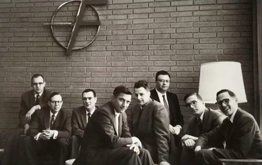 The traitorous eight decided it was time to start their own company, and they met with Sherman Fairchild who was the founder and CEO of Fairchild Camera and Instrument. They reached an agreement for $1.4 million for the first 18 months of operation and more money contingent on progress. That would be roughly $16 million in 2024 dollars. All eight resigned on the 18th of September in 1957. The following day, they signed the contract that created Fairchild Semiconductor Corporation at 844 South Charleston Road. The company produced its first bipolar silicon transistor just 6 months later.