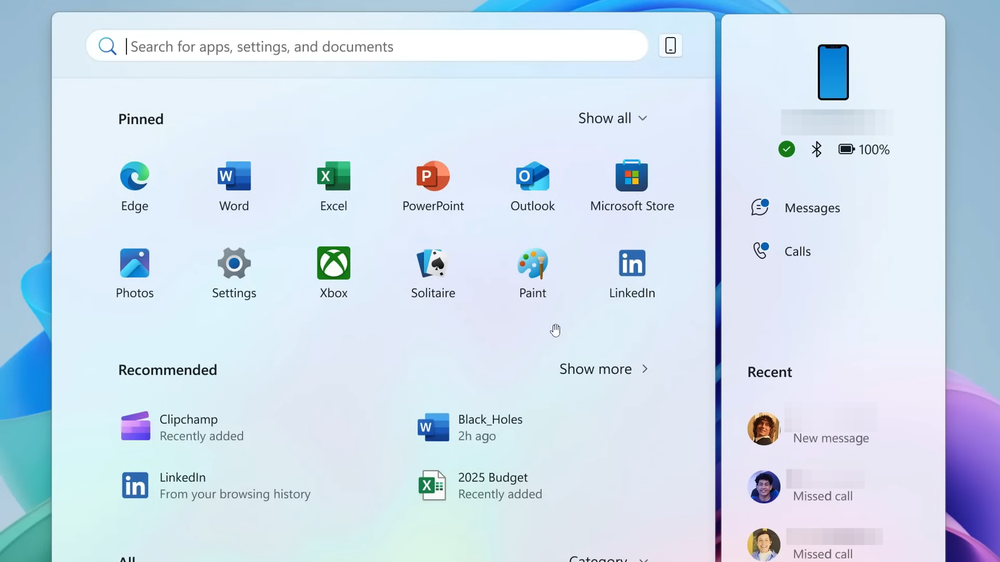 This refreshed Start menu combines style with functionality — moving the full app list to the main page, introducing grid, list, and category views, letting users disable Recommendations, and adding a more dynamic Phone Link panel. It’s also adaptive, automatically adjusting to different screen sizes for an improved experience across devices.