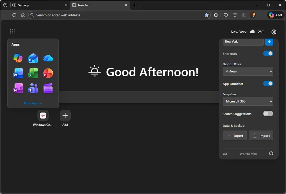 Created by an independent developer, this open-source extension completely replaces Edge’s default start page with a minimalist, modern interface inspired by Windows 11’s Fluent Design system. Ironically, it aligns more closely with Microsoft’s own design language than the official Edge homepage itself.