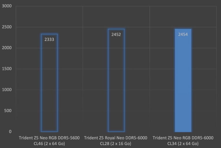 The manufacturer plays with several parameters: frequency, timings, and capacity. At the time of writing this review, capacities range from 32 GB (2 x 16 GB) up to 128 GB (2 x 64 GB), with intermediate options of 96 GB (2 x 48 GB), 64 GB (2 x 32 GB), and 48 GB (2 x 24 GB). In this review, Tech2Geek tested one of the flagship kits: the Trident Z5 Neo RGB 128 GB DDR5-6000 CL34.