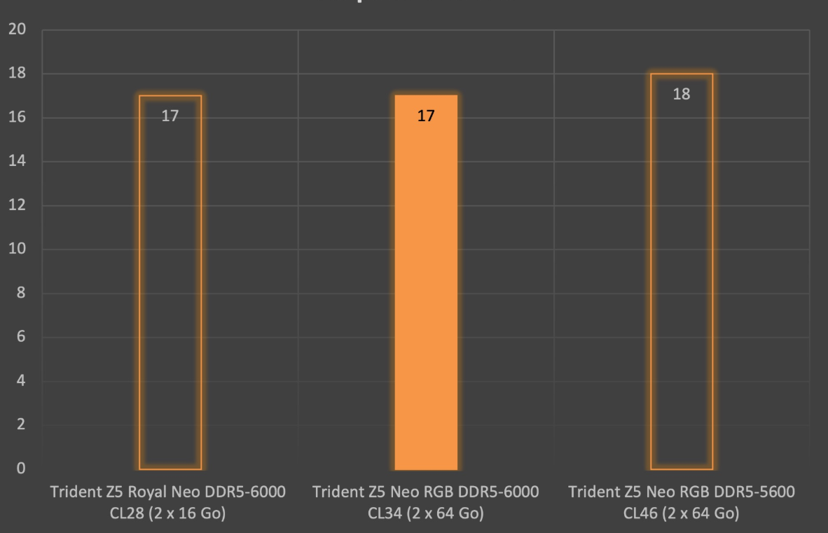 Such a RAM configuration targets high-end PCs dedicated to extreme gaming and content creation. We tested it on a Ryzen 9 9950X3D platform paired with a Gigabyte X870E Aorus Master motherboard and a Gigabyte GeForce RTX 4090 Gaming OC.