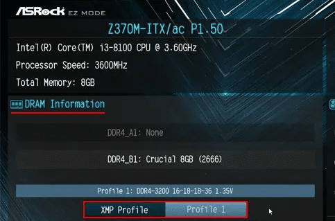 If your UEFI has an EZ mode interface, the UEFI should load this interface by default. You can click on XMP Profile under DRAM Information to toggle the profiles on this mode.