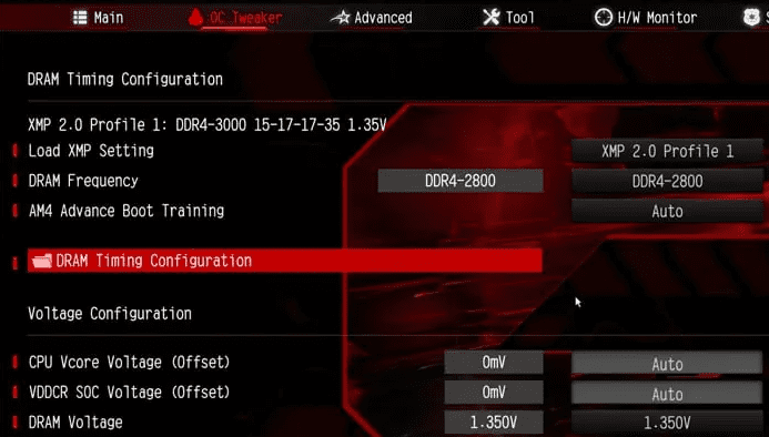 Then, go to the OC Tweaker tab and then DRAM Configuration option/section.