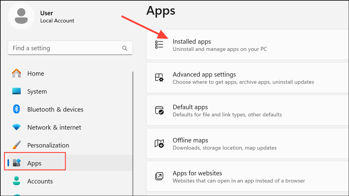 Step 2: Click on “Apps” and then “Installed apps” or “Apps & features”.